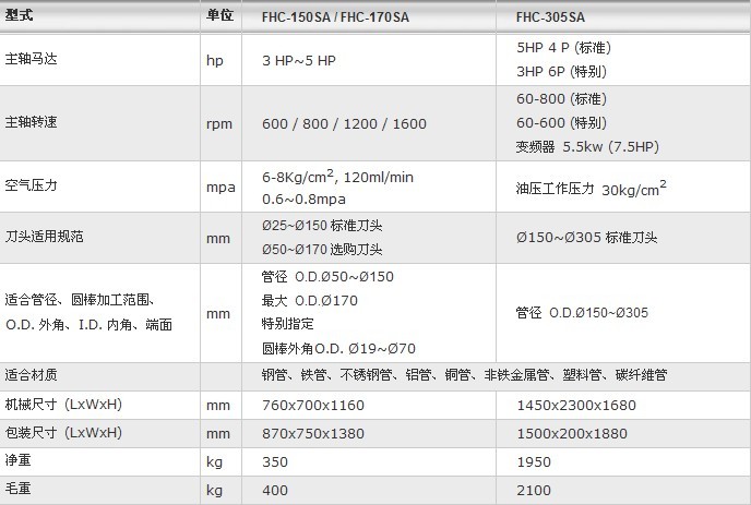 眾合鑫FHC-305SA大管倒角機用于切割后的鋼管、鐵管、鋁管、不銹鋼管、無縫鋼管、45號鋼管、銅管、鐵棒、鋼棒等管材的倒角去毛刺,平端面,倒坡口生產。特別適用于鋼管、鐵管的快速倒角去毛刺。主要適用于鍋爐管道、金屬油管、金屬缸體、千斤頂、船舶配件、石油管道、軍工等行業,特別適合大直徑管類倒角去毛刺。